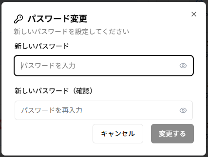 - 「パスワード変更」ダイアログが開きます。以下の項目を入力してください