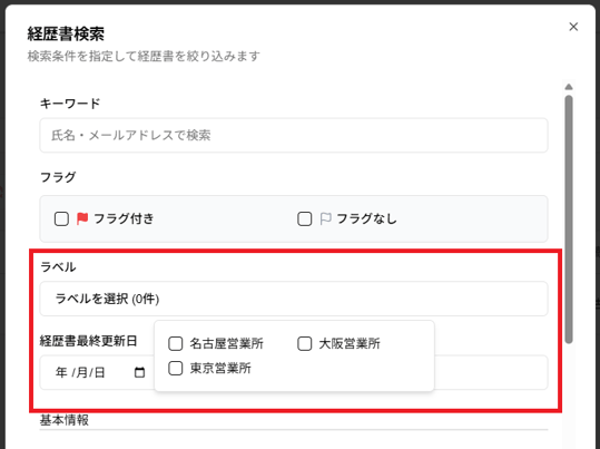 経歴書一覧でラベルを使って絞り込む