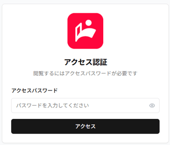 共有 URL にアクセスするとアクセスパスワードの入力画面が表示されます。URL の発行者から受け取ったアクセスパスワードを入力し、「アクセス」ボタンをクリックしてください。