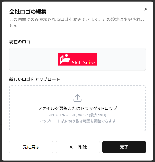 ⚠️ ここで変更したロゴは閲覧画面上でのみ反映されます。Skill Suite 側の企業ロゴ設定は変更されません。